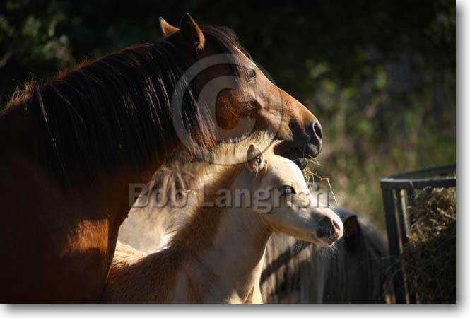 Behaviour, Welsh Mountain Mare & Foal, The Butts Farm Rare Breeds, UK |