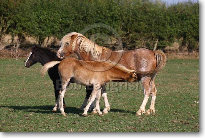 Welsh Mountain Mare, Foal & Adopted Foal, The Butts Farm Rare Breeds, UK |
