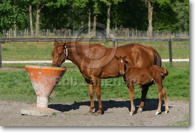 Quarter Horse Mare & Foal Drinking