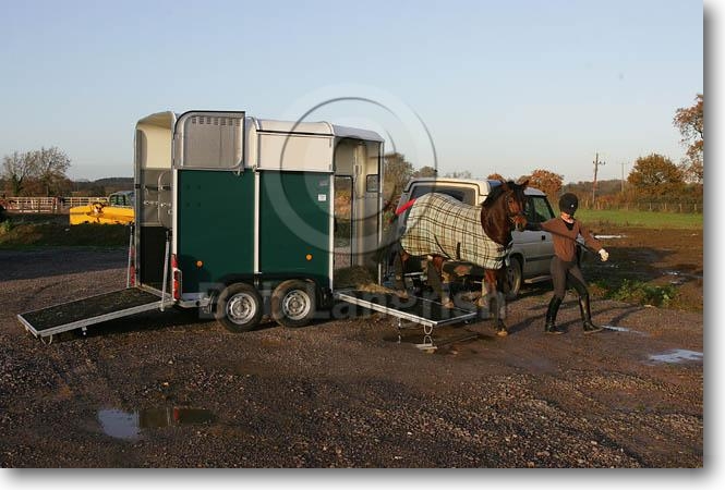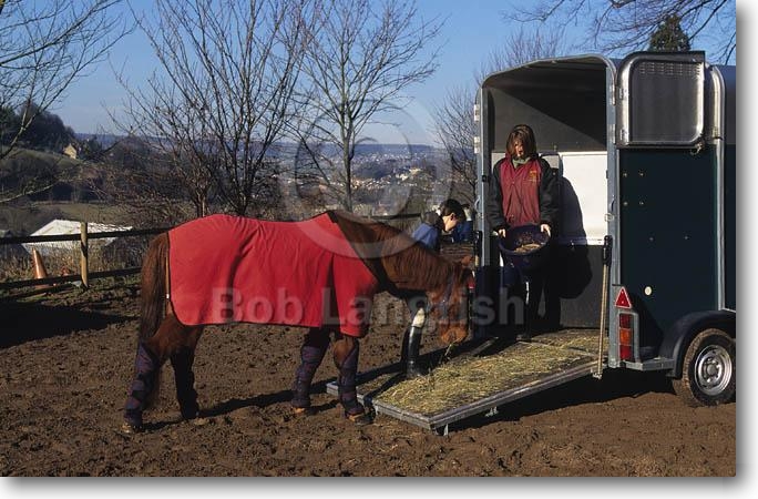 Loading Horse In Trailer Ready For Travelling, Rug, Boots & Tail Guard