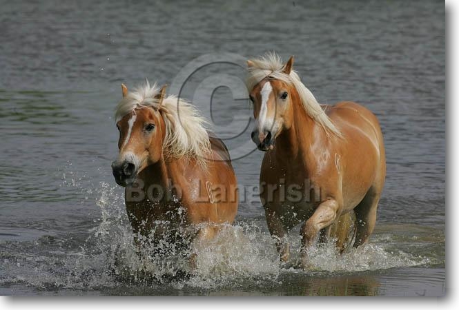 Haflingers Playing In Water