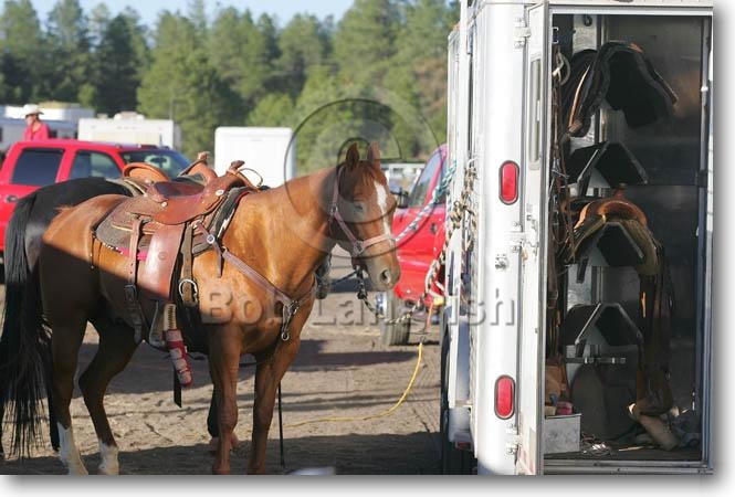 USA Transport Horses Tied And Saddles