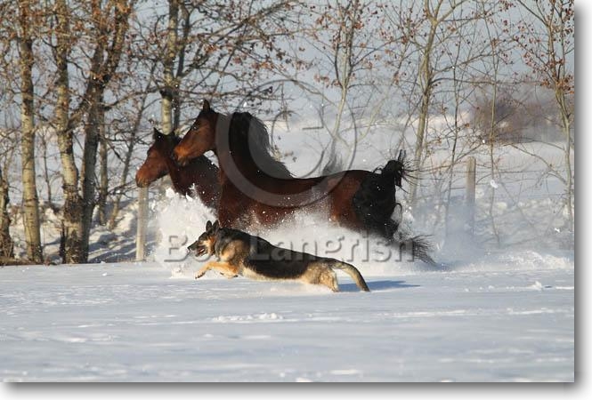 Morgans & German Shepherd Dog In The Snow