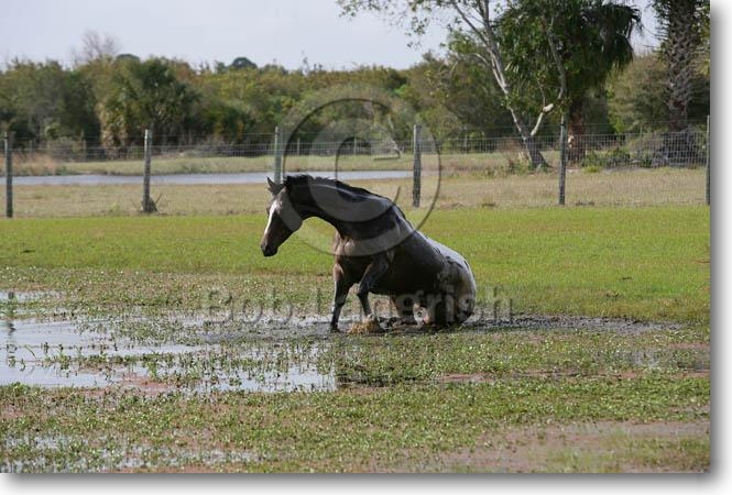 Appaloosa Getting Down To Roll In Water