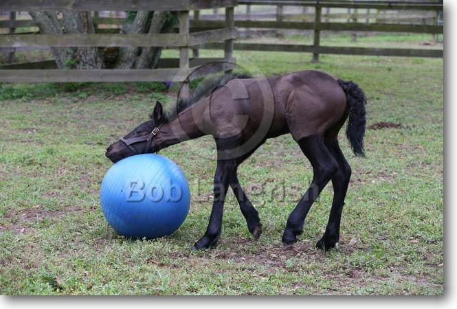 Friesian Foal Playing With Horseball, Bluffview Clydesdales & Friesians, FL